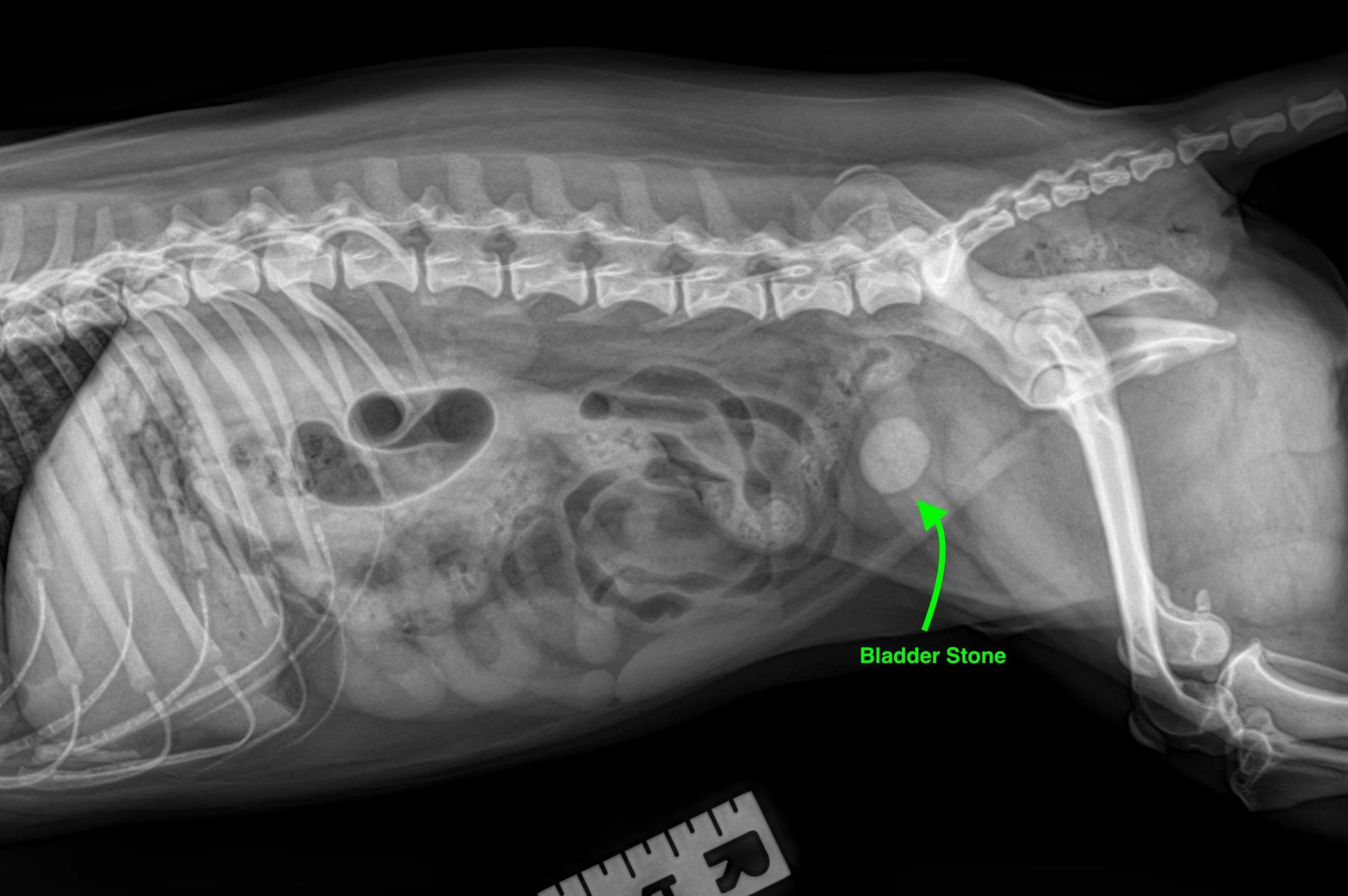 Some large stones can be felt on physical examination; however, most pets need to have an x-ray or ultrasound of the bladder to see the stone. A urinalysis and culture of the urine are often performed to determine the crystal type of stone and other related concerns. After removal, the stones will be sent for mineral analysis.